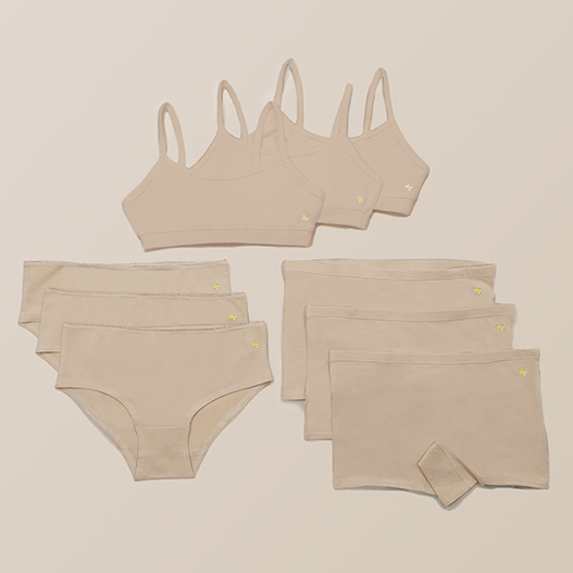 3 Simple Start Training Bras (Sandy) + 3 Soft Square Boyshorts (Sandy) + 3 Gentle Day Underwear (Sandy)